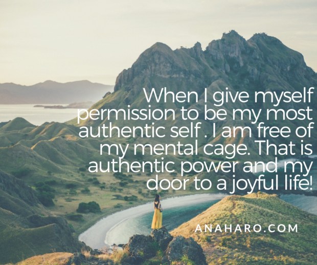 When I give myself permission to be my most authentic self . I am free of my mental cage. That is authentic power and my door to a joyful life!