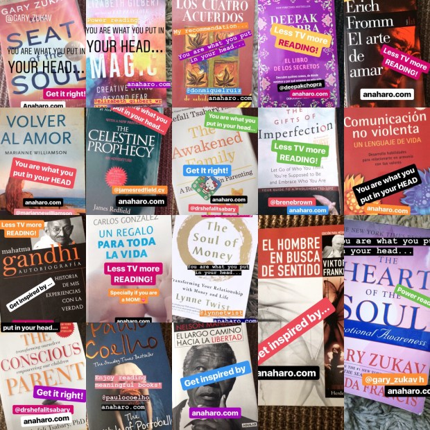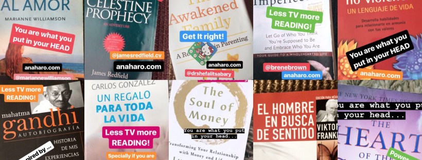 More books/ más libros… 20 marzo, 201821 marzo, 2018 Aquí un resumen de libros que YO recomiendo💓💓💓💓💓 Por favor EVITEN novelas basura, novelas vacías de sentido… Busquen en los libros y en TODO lo que le meten a su cabeza, un sentido. Te sientas a ver una serie, pregúntate: Esto qué me aporta? Cómo me siento después de ver esta serie/novela/ programa, yo que se? No regales/tires tu tiempo, tu VIDA así nada más a cualquier mugre! Vamos a meterle consciencia! Sí, ve la revista, la tele, el Facebook, pero con consciencia. Cómo te hace sentir eso que estás viendo? Satisfecha contigo? Te aporta algo bueno ? Ideas buenas? Le suma a tu creatividad? Te da energía?. Vamos a meterle CONSCIENCIA y a dejar de consumir mugrero. Sorry pero a mí me desquicia ver a México dormido en NOVELAS!! Ok ahora SERIES novelas más “fancy”🙈😖 Todo el país adormecido por la televisión. Y ahora viene el internet ABIERTO! A un país que no acaba de entender como usar la tele! Ahora le das internet para que se acabe de embrutecer….😬🙈 Aquí les dejo esta reflexión! Sorry medio agria mi reflexión. Pero el punto es crear consciencia y ayudar a nuestros NIÑOS y JÓVENES a que no terminen como zombies 😘 Necesitamos empezar nosotros los PAPÁS a salir del trance, para poder ayudar a nuestros hijos💓😘 Con cariño Ana Haro ❣️ . @anaharomyjourney @deepakchopra @mariannewilliamson @paulocoelho . #anaharomyjourney #myjourney_ana #books #bookslover #nightbook #consciousness #maternidad #crianzaconsciente #crianza #tv #niños #hijos #familia #mexico #novelas #comunidad #mamá Comparte esto: Haz clic para compartir en X (Se abre en una ventana nueva) X Haz clic para compartir en Facebook (Se abre en una ventana nueva) Facebook Me gusta Cargando...