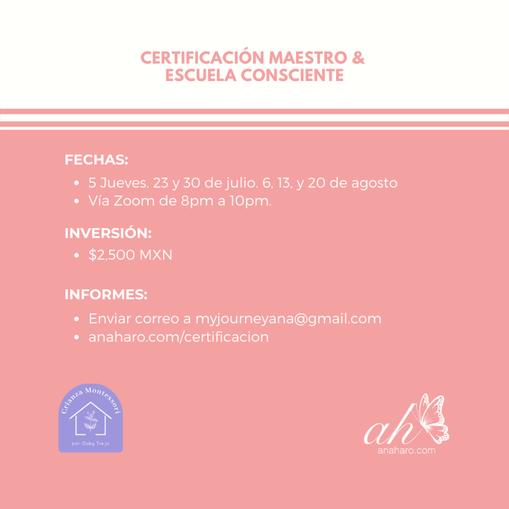 Gaby Trejo directora y fundadora de @lantanamontessori y un servidora Ana Haro de @anaharomyjourney estamos fascinadas de ofrecer esta Certificación a todos los docentes, guías, educadores y padres de familia.