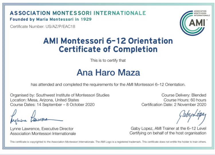 🇪🇸Muy feliz de compartir con ustedes mi Diploma @AMI_Montessori.