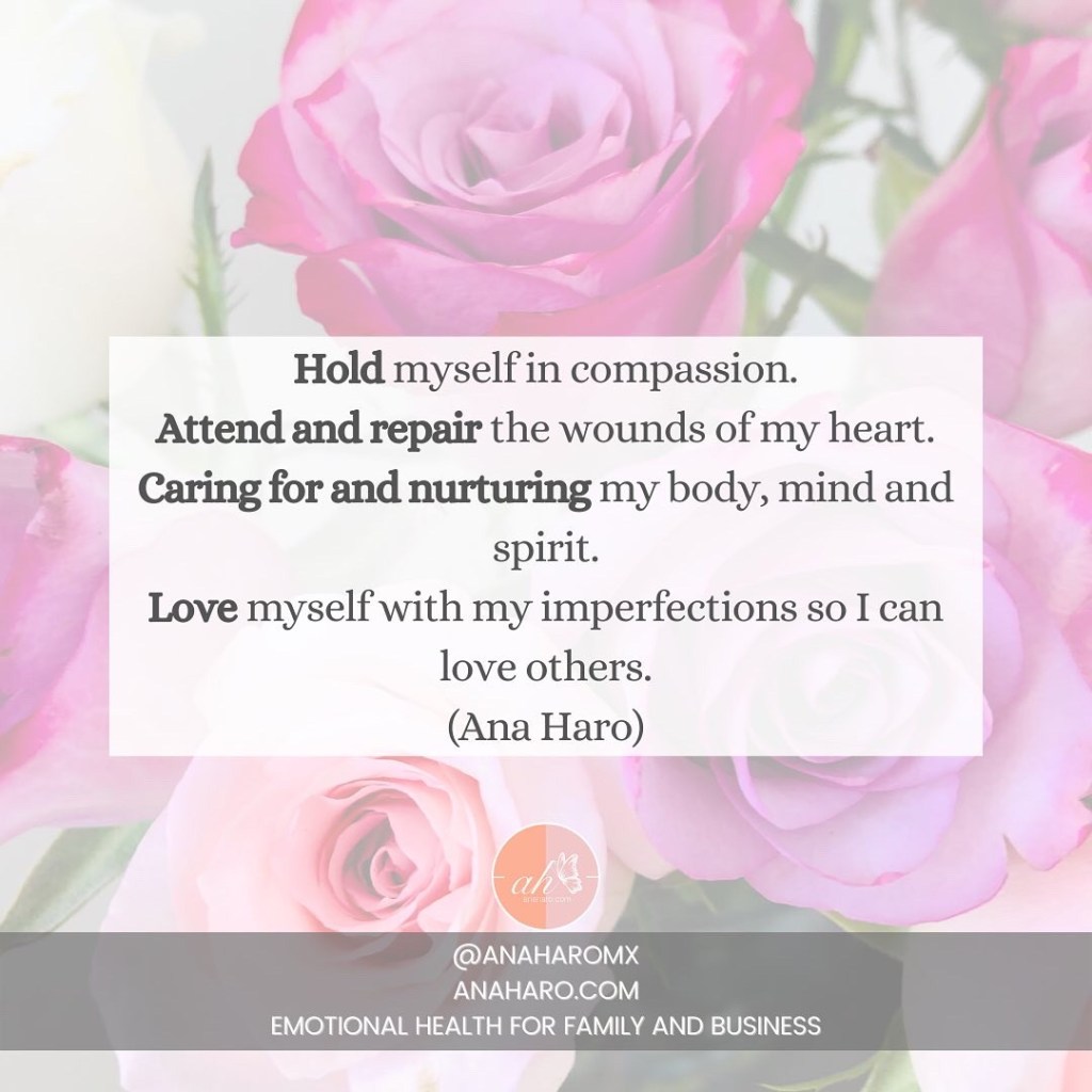 Aprender a sostenerte a ti misma en compasión, involucra con gentileza atender y reparar las heridas del corazón. Cuidar y nutrir tu cuerpo, mente y espíritu.