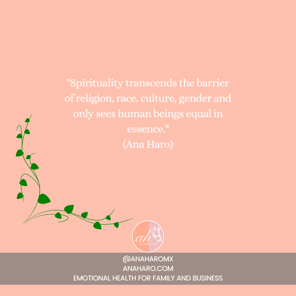 Espiritualidad es saberse uno con Dios, es ver a Dios en otros. Entender que hay un mensaje en mí para ti y en ti para mí. Y cuando coincido contigo, de mi y de ti depende leer ese mensaje.