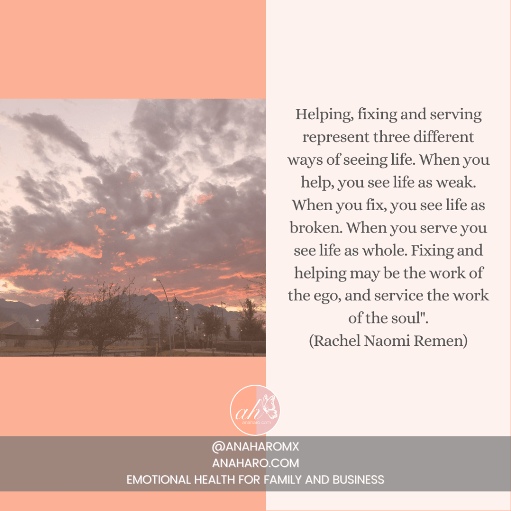 Ese es el reto que enfrentamos muchos de nosotros, queremos componer, queremos arreglar. Sin darnos cuenta muy sutilmente ese es nuestro ego, queriendo ponerse el sombrero del “héroe”.