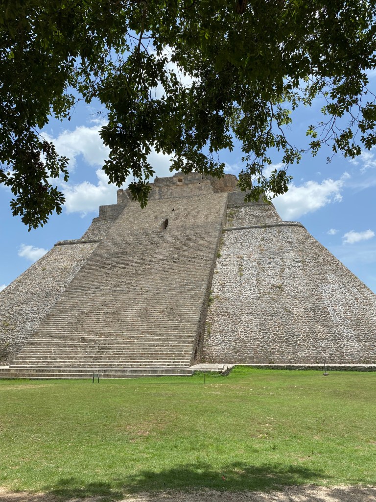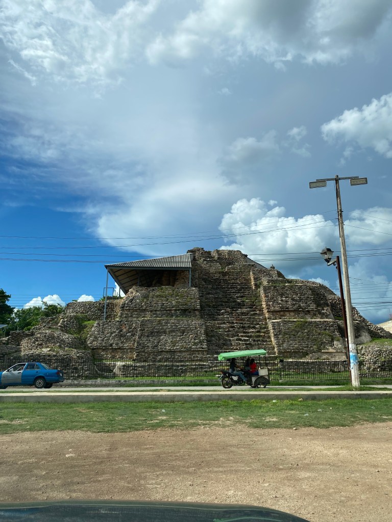 La primera fue Acanceh (Acanqué) veníamos de paso, porque fuimos a los Cenotes de Sta Bárbara (increíbles!), pasamos por una pirámide que literal está en medio del pueblo y tratando de leer el letrero ahí medio borroso, se nos acerca Don Mario el Custodio de la Pirámide y nos invita a bajarnos. Le pensamos la verdad, ya veníamos súper cansados de nadar en 3 cenotes🫠. Como quiera nos bajamos.