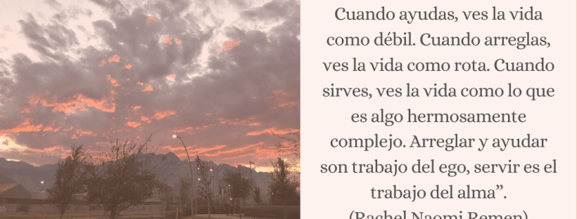 🇲🇽Me gustó mucho esta forma de ver la vida. Esta cita nos habla a muchos. Para los que tenemos a nuestro cuidado a algún ser querido, pueden ser hijos, pueden ser adultos mayores, pueden ser clientes, pueden ser pacientes, cualquier ser que demande atención, tiempo y cariño. Para nosotros trabajadores sociales, maestros, educadores, doctores, incluso … Sigue leyendo Una vida de servicio, cómo?