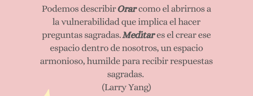 🇪🇸Muchas veces me han preguntado si meditar es lo mismo que orar (rezar). Esta cita me fascinó porque aclara de forma muy precisa la diferencia entre orar y meditar. Orar implica hacer preguntas del corazón, hablar de lo que siente el corazón. De forma sincera, de forma abierta, de forma vulnerable. Casi siempre lo hacemos … Sigue leyendo Orar y Meditar