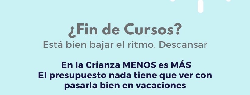 Está bien bajar el ritmo. Descansar☺️ En la Crianza MENOS es MÁS. El presupuesto nada tiene que ver con pasarla bien en vacaciones💛 No se trata de hacer todo al mismo tiempo. Se trata de ir cambiando la rutina poco a poco para ir transicionando a un periodo de vacaciones disfrutable para todos💓☺️ Sí va … Sigue leyendo ¿Fin de Cursos?