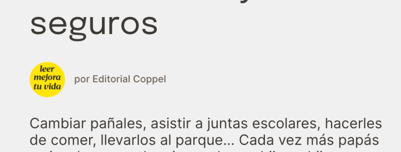 Muchas gracias a Editorial @coppel por invitarme a colaborar para su artículo del #DiaDelPadre 💛💙💚 Fue una entrevista muy agradable, platicando de una tema que me apasiona #PaternidadConsciente El rol tan importante que juega el #Papá en la vida de sus hijos y viceversa. Es una relación circular que se nutre con los momentos del … Sigue leyendo Colaboración Editorial Coppel: Día del Padre